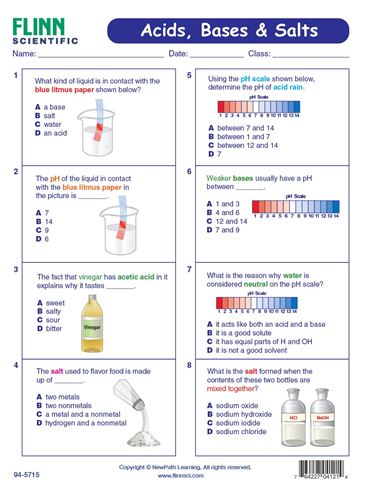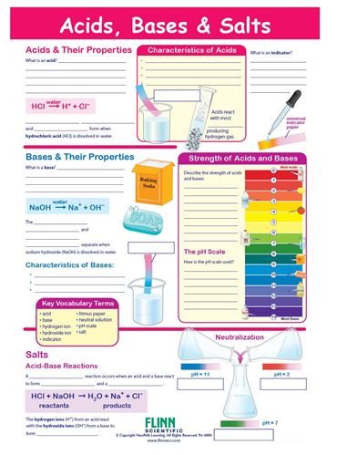 Acids, Bases & Salts Visual Learning Guide provides comprehensive coverage. Each 11" x 17" laminated Write-On/Wipe-Off guide includes four panels of helpful information to engage students in the study of this topic.