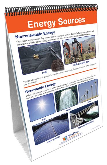 Introduce and review standards-based concepts on Energy. The set features 10 double-sided, laminated charts, each 12” x 18” and spiral-bound on a durable, free-standing easel. Side 1 of each chart features a graphic overview of topic while Side 2 serves as “write-on/wipe-off” activity chart. Also includes Activity Guide featuring copy-masters and exercises. Covers: What is Energy?; Energy from the Sun; Types of Energy; Chemical Energy; Sound & Light Energy; Electrical Energy; Thermal Energy; Energy Flow; Energy Sources; and Vocabulary.