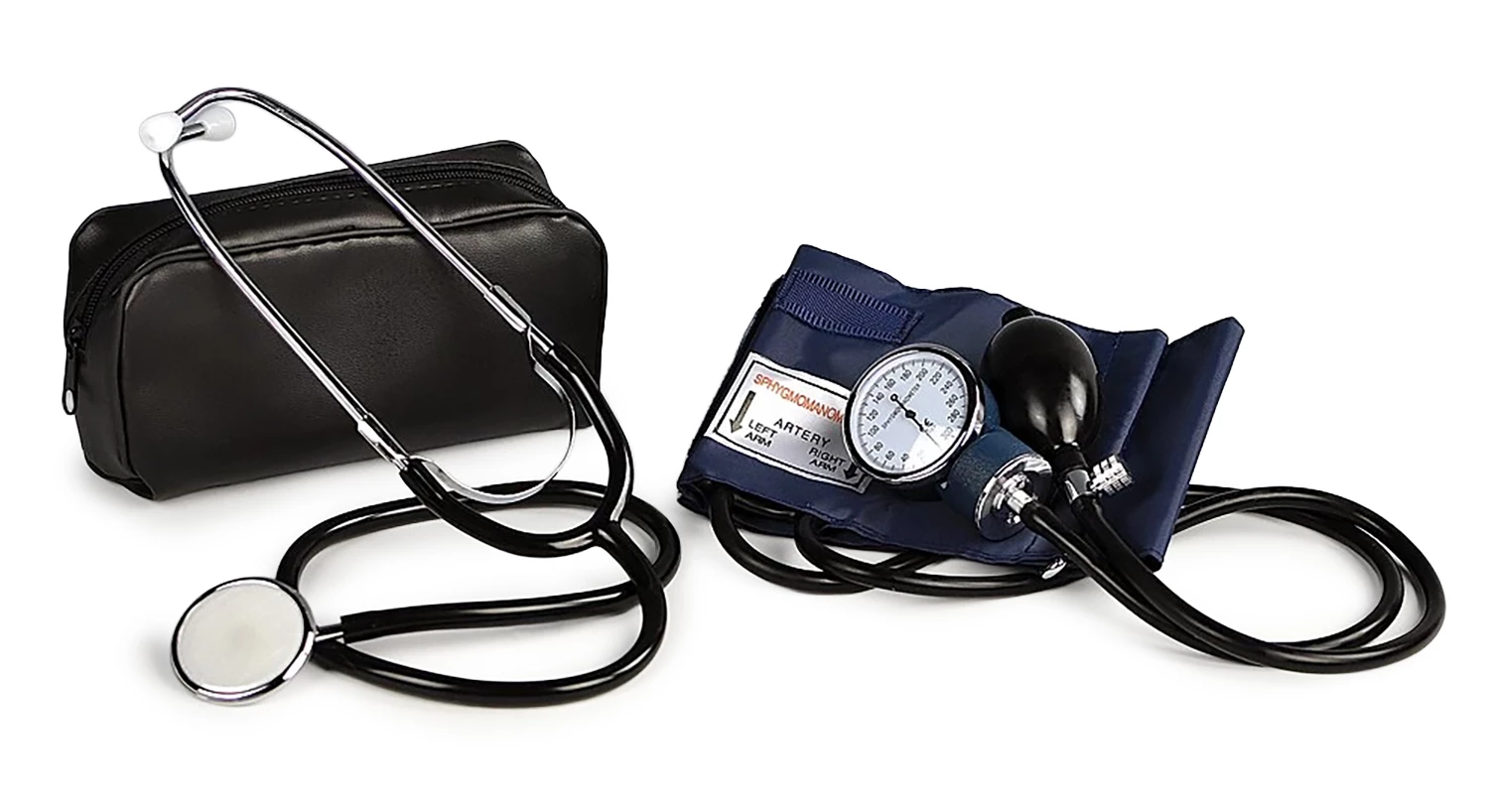 Blood Pressure Student Set has a high-sensitivity Bowles stethoscope and an aneroid sphygmomanometer. This economical set is similar to those commonly seen in clinical use.