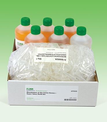 Refill kit for Blood Stains at the Crime Scene Super Value Kit (Catalog No. AP7610). Includes simulated blood and microcentrifuge tubes.