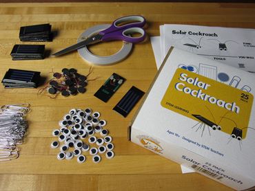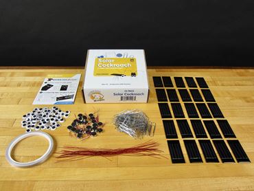 The Solar Cockroach is a simple activity that quickly and efficiently introduces students to the concepts of solar energy, motion and engineering. No batteries required, solar energy powers the cockroach. Construction takes about 10–20 minutes, and the lesson can be expanded as students investigate different light sources and intensities. A hot glue gun is required and available separately.
