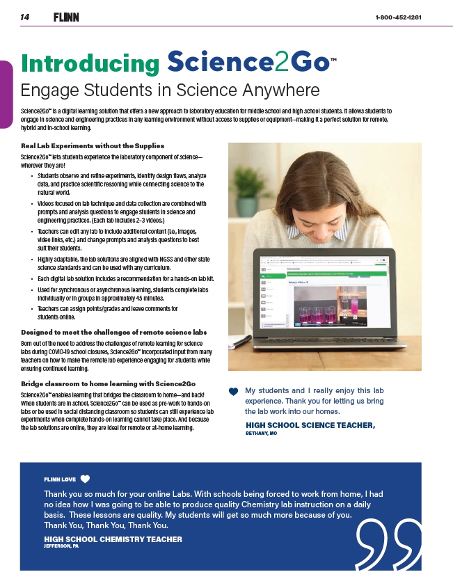 labs during COVID-19 school closures, Science2Go™ incorporated input from many