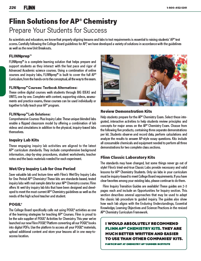 FLINN AP® CHEMISTRY KITS. THEY ARE