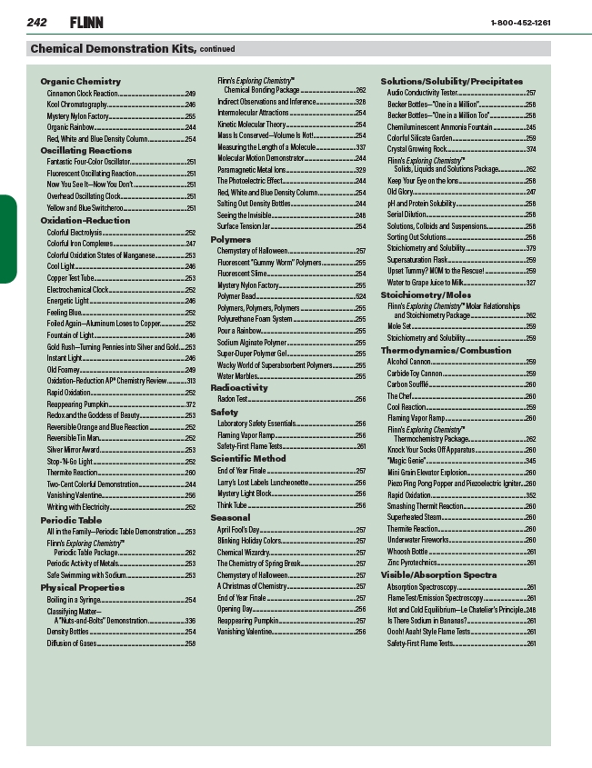 Chemical Demonstration Kits, continued