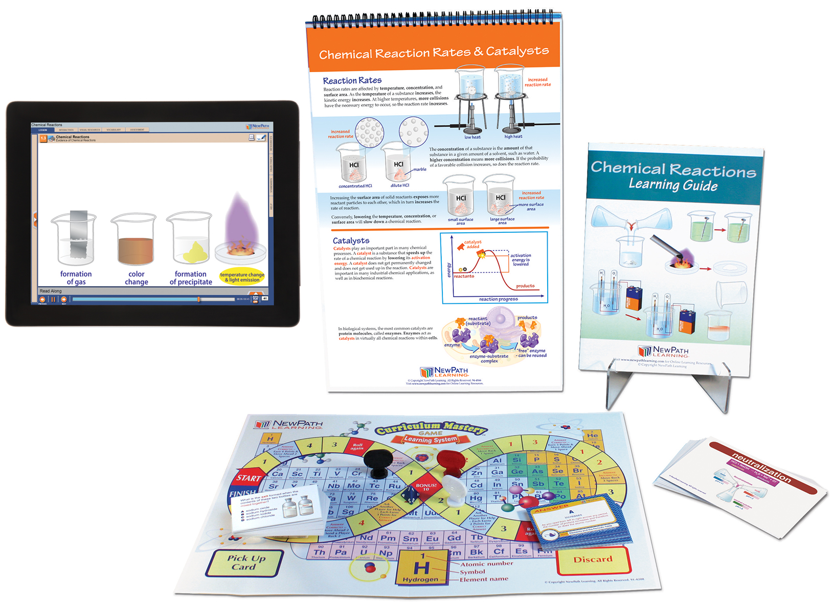 Complete blended learning resource system - Covers current state & national science standards - including Next Generation Science (NGSS)! NewPath’s Chemical Reactions Curriculum Learning Module provides a complete set of visual, digital and hands-on resources designed to support teacher instruction and provide students with the skills to master key concepts on Chemical Reactions.