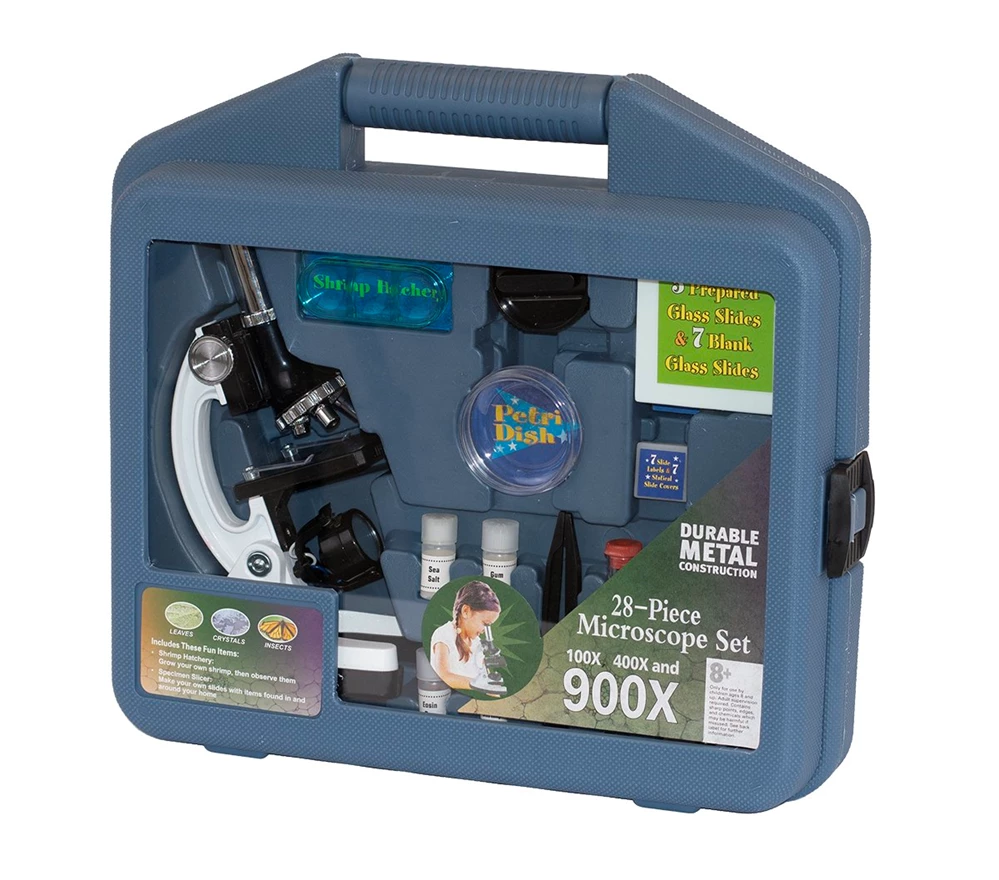 The Walter Microscope offers a unique 90X objective lens for higher magnification needs. It features a 10X wide-field eyepiece, 4X and 10X objectives, and both mirror and LED illumination options, allowing for flexible lighting in classroom or field conditions. Its monocular head and battery operation provide ease of use and portability. A great choice for upper-elementary and middle school science programs.
