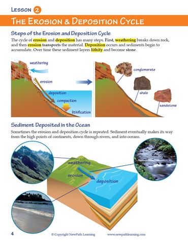 Covers: Weathering & Erosion; Erosion & Deposition Cycle; Mechanical Weathering; Chemical Weathering; Forces of Erosion & Deposition; Water; Glaciers; Soil; and Landforms & Typographic Maps.