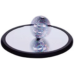 Spin the disk and enjoy a hypnotic light display with ever-changing sound. The disk seems to spin forever, rotating and precessing as it slowly transforms gravitational potential energy into kinetic energy. The concave mirror base reflects the disk's spectacular effects. Amazing to use in a darkened room with a flashlight or laser. Includes magnetic holographic film for extra dazzle. 7.5 cm dia. disk, 20 cm dia. mirror.