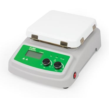 The Flinn Scientific Hot Plate with Magnetic Stirrer delivers fast heating, precise stirring, and reliable durability for classroom laboratories. Featuring a chemical-resistant ceramic top, these models reach maximum temperatures of up to 540 °C, with rapid heating performance that brings solutions to a boil in just minutes. The integrated magnetic stirrer adjusts smoothly from 300 to 2000 rpm, ensuring consistent and controlled mixing for a wide range of experiments. A die-cast aluminum base isolates the heating surface to protect benchtops from heat damage, while options in both analog and digital displays allow educators to choose the best fit for their needs. Compact yet powerful, these hot plate/stirrers are designed for safe, long-lasting performance in demanding lab environments. Shop more Chemistry Magnetic Stirrers