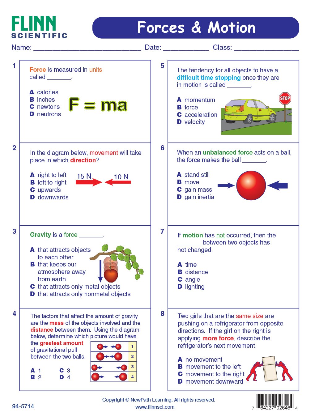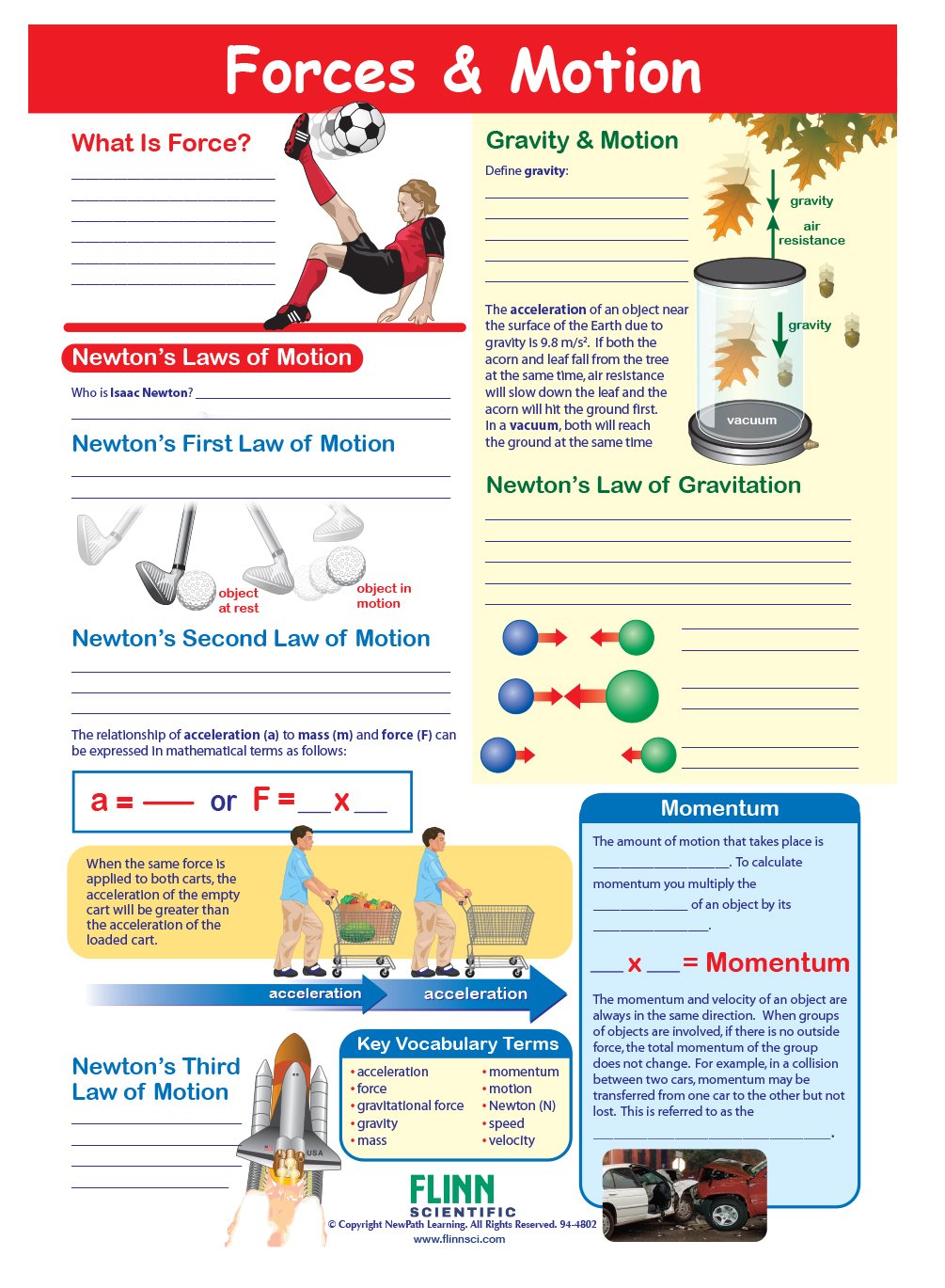 Forces & Motion Visual Learning Guide provides comprehensive coverage. Each 11" x 17" laminated Write-On/Wipe-Off guide includes four panels of helpful information to engage students in the study of this topic.