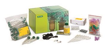 Introductory DNA classroom study kit, includes buffer, protease + salt, test tubes/holders, disposable pipets, curriculum, and all materials to make DNA necklaces, for 36 students; education use only