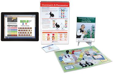 Used in combination or individually, your students will gain thorough comprehension from an engaging blend of technology-based instruction, interactive print resources, and game-based learning. Includes detailed, standards-based coverage of: Inheritance of Traits; Chromosomes & Karyotypes; Gregor Mendel; Mendel’s Experiments; Dominant & Recessive Traits; Punnett Squares; Phenotypes & Genotypes; Codominance; and Making a Pedigree.