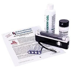 Glo Germ is a fantastic product which safely and graphically demonstrates to students and adults alike how germs are spread. Used throughout the United States in schools, hospitals and food services, Glo Germ consists of an odorless lotion or powder which glows brightly when exposed to ultraviolet light. Perfect for your health curriculum.