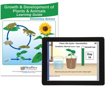 Your perfect blended learning solution for use in the Classroom or for Remote Learning/Home Study, the Growth & Development of Plants & Animals Student Learning Guide provides comprehensive coverage of a key, standards-based NGSS concept along with one-year online access to a corresponding Multimedia Lesson featuring in-depth, interactive coverage of the concept. The Multimedia Lesson can be accessed by a teacher and all of their students anywhere, anytime, on any device – including Chromebooks, tablets, computers and mobile devices!