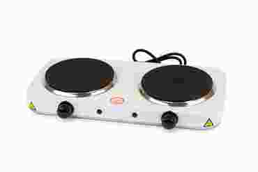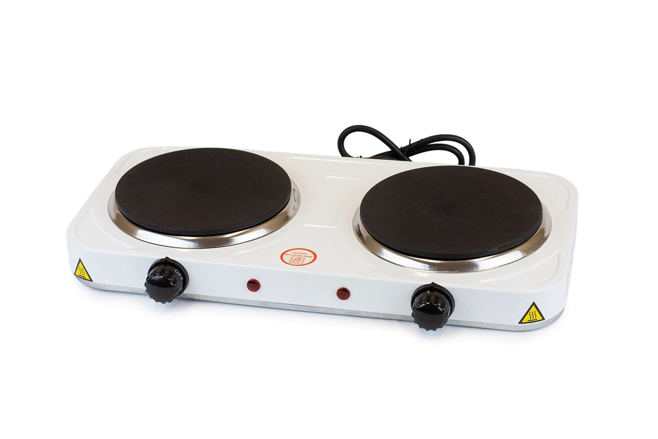 Burner Type: Double, Size: 43 x 21 x 7 cm, Heating Plate Diameter: 15 cm each, Max Temperature: 470°C per burner, Power: 2000W total, Voltage: 110V~60Hz, Material: Iron alloy and plastic