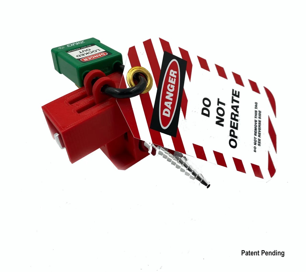 Durable PETG lockout for securing laboratory lever-handle ball valves.