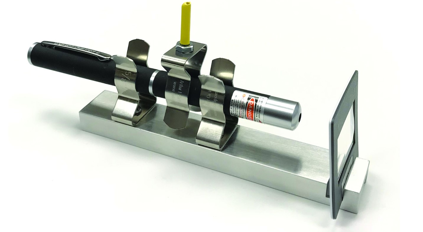 The unique base securely holds the included standard laser pointers. An included clip allows you to hold the laser button on during experiments. Measurements of the light patterns are easy to read when the laser patterns are projected against a wall. Includes activity guide.