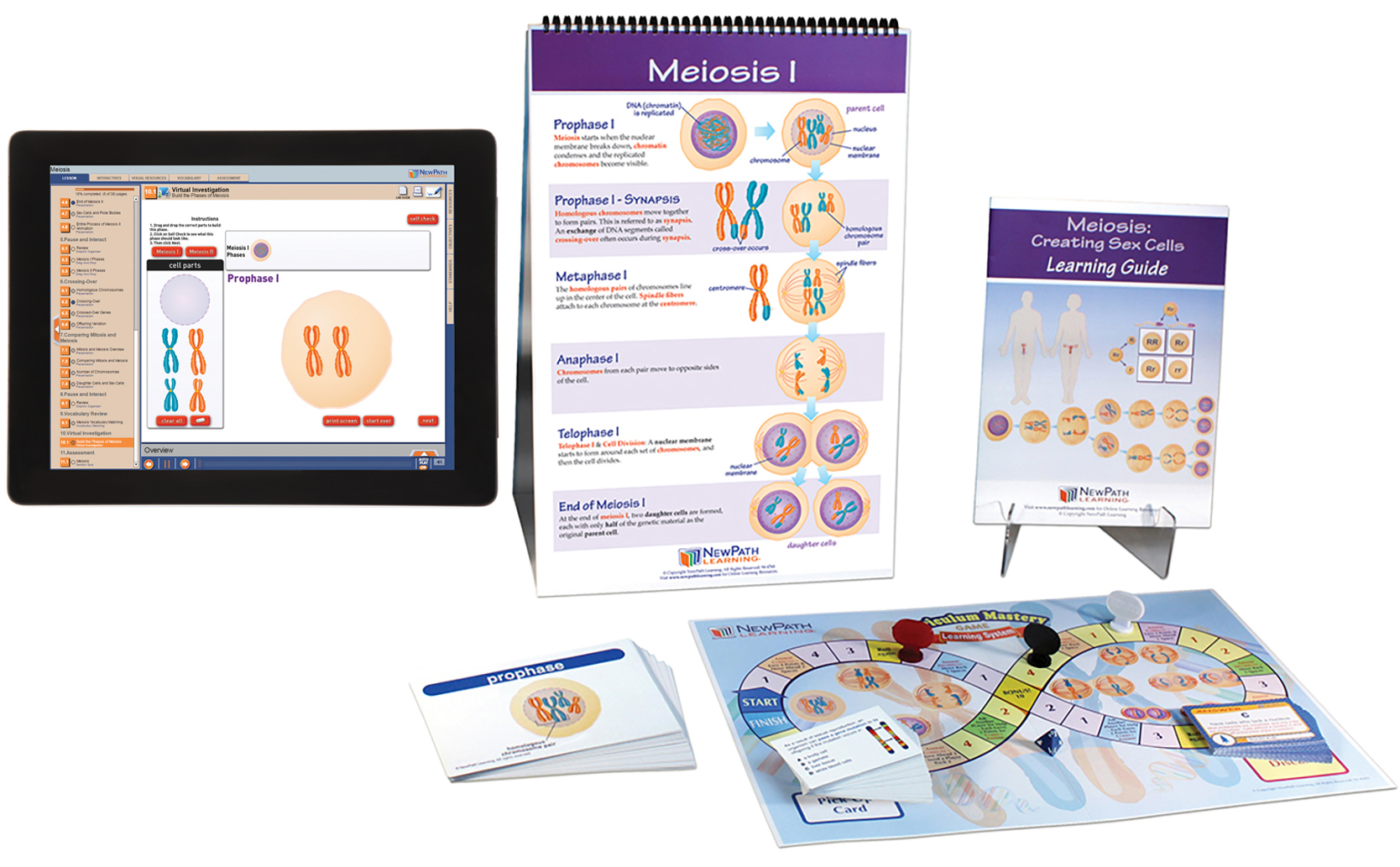 Complete blended learning resource system - Covers current state & national science standards - including Next Generation Science (NGSS)! NewPath’s Meiosis Curriculum Learning Module provides a complete set of visual, digital and hands-on resources designed to support teacher instruction and provide students with the skills to master key concepts on Meiosis.