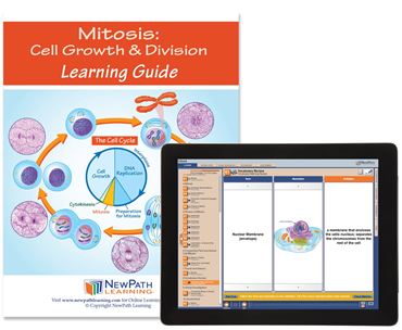 Your perfect blended learning solution for use in the Classroom or for Remote Learning/Home Study, the Mitosis Student Learning Guide provides comprehensive coverage of a key, standards-based NGSS concept along with one-year online access to a corresponding Multimedia Lesson featuring in-depth, interactive coverage of the concept. The Multimedia Lesson can be accessed by a teacher and all of their students anywhere, anytime, on any device – including Chromebooks, tablets, computers and mobile devices!