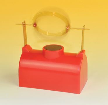 With the Simple Electromagnetic Motor, demonstrate the basic principles of electromagnetism using a bit of wire, a magnet, a metal support stand, and a battery.