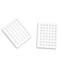 48-well unskirted PCR plate in low-profile format (8 × 6 wells), sold as a 50-pack, for flexible use in classroom or lab PCR setups; plate is white polypropylene and can be cut down when fewer reactions are needed.