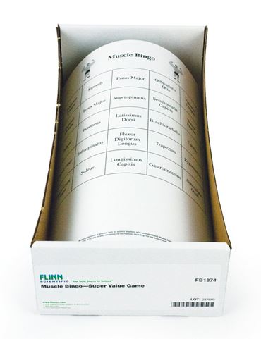 Time to flex your muscles-play bingo! Help students learn the names, locations and functions of the muscles in the human body with this engaging version of the ever-popular bingo game. Everyone will want to win, but they can’t win without learning. Game includes 30 preprinted bingo cards, lots of bingo chips and bingo choice sheets to call out the selections. Bingo choice sheets list the names, descriptions, locations and functions of 74 muscles. Teacher notes with helpful teaching tips are also provided.
