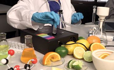 Highly accurate spectrometer with broad range, ultraviolet through visible light illumination for detailed spectroscopic techniques in chemical structure and concentration determination.