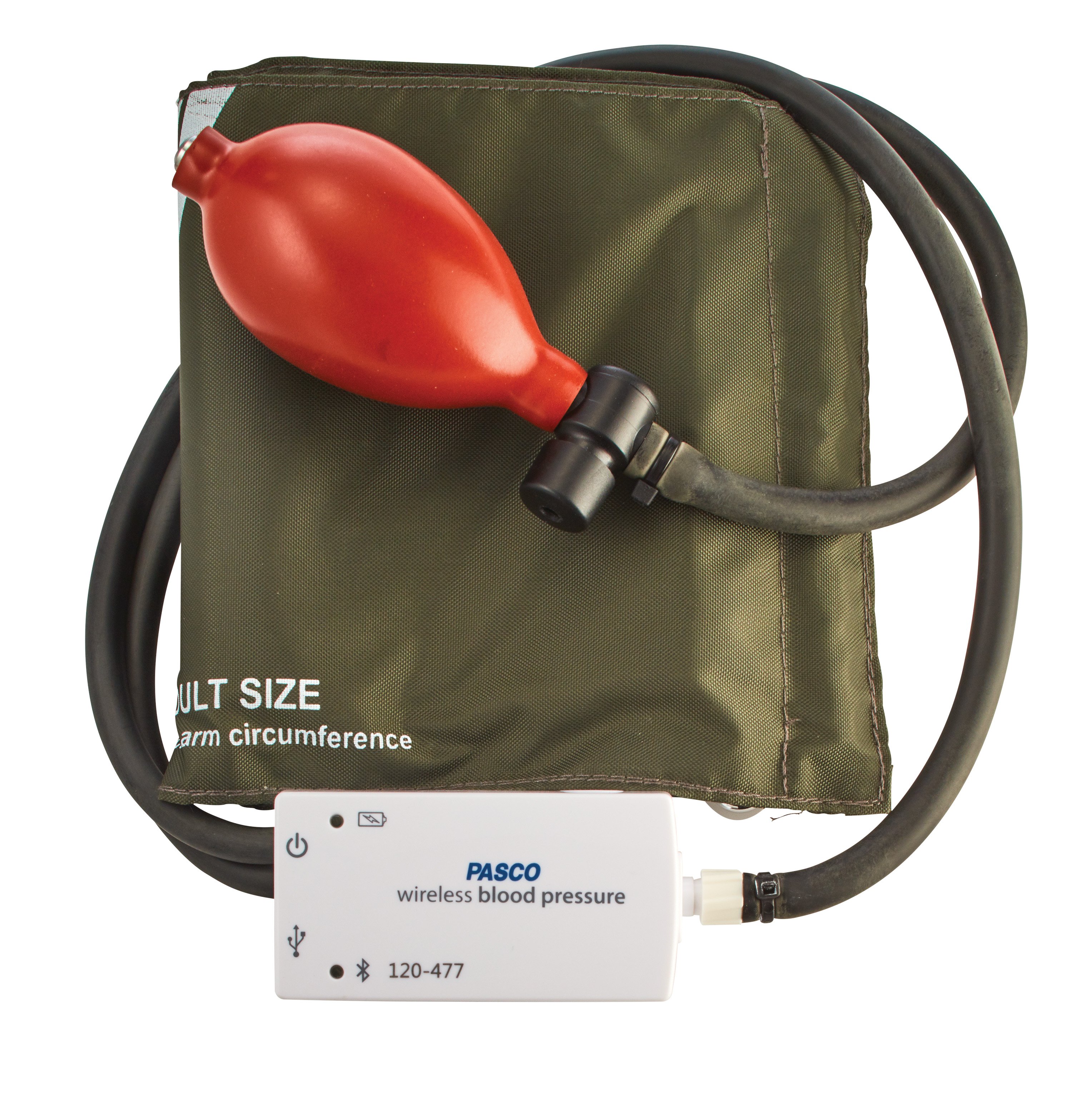 PASCO’s Wireless Blood Pressure Sensor allows students to quickly and easily measure both systolic and diastolic arterial blood pressure (mmHg) as well as heart rate (pulse in bpm). Comparing the digits display for systolic and diastolic pressure with the display of blood pressure from the real-time graph helps students gain a contextual understanding of the physiology of blood pressure.