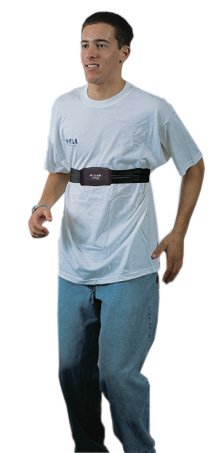 The Wireless Exercise Heart Rate Sensor has a chest strap and will transmit data wirelessly up to 10 m away! The electrode belt fits around the ribcage (worn against the skin for best results, but can be worn over a shirt if a drop of saline solution is applied under the electrodes). Data wirelessly transmits the cardiac signal to the sensor.