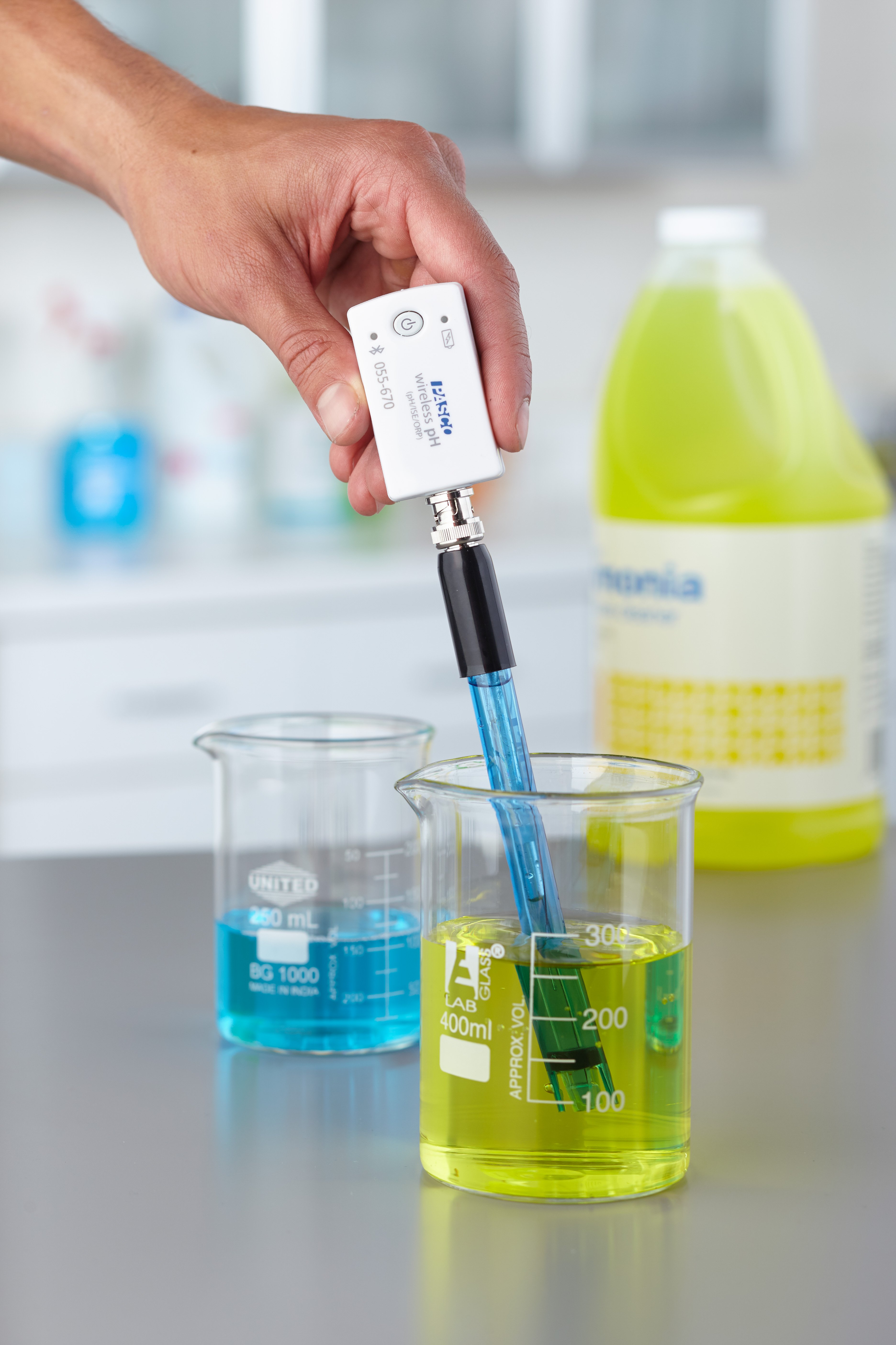 The Wireless pH Sensor connects via Bluetooth® to monitor the pH of solutions. It can transmit data in real time, or store data for days when continuous monitoring is required. The Wireless pH Sensor enhances countless activities, including acid-base titrations, investigations into household chemicals, analyses of chemical reactions, water quality studies, and much more.