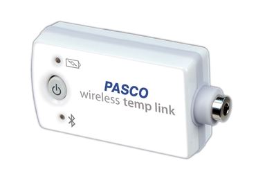 The Wireless Temperature Sensor Link enables wireless connection for any PASCO temperature probe with a 3.5-mm connection. The link comes with a Fast Response Temperature Probe, but it can also connect to the Stainless Steel Temperature Probe, Skin/Surface Temperature Probe, the Absolute Zero Sphere, and the Ideal Gas Law Apparatus.