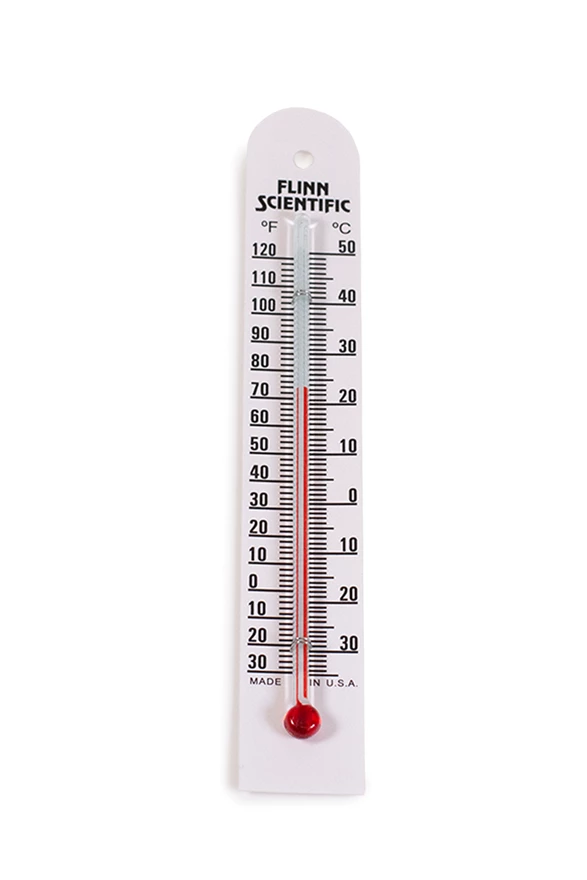 Plastic-backed thermometer reads in both Celsius and Fahrenheit scale. (+/-) 2° accuracy; non-toxic.