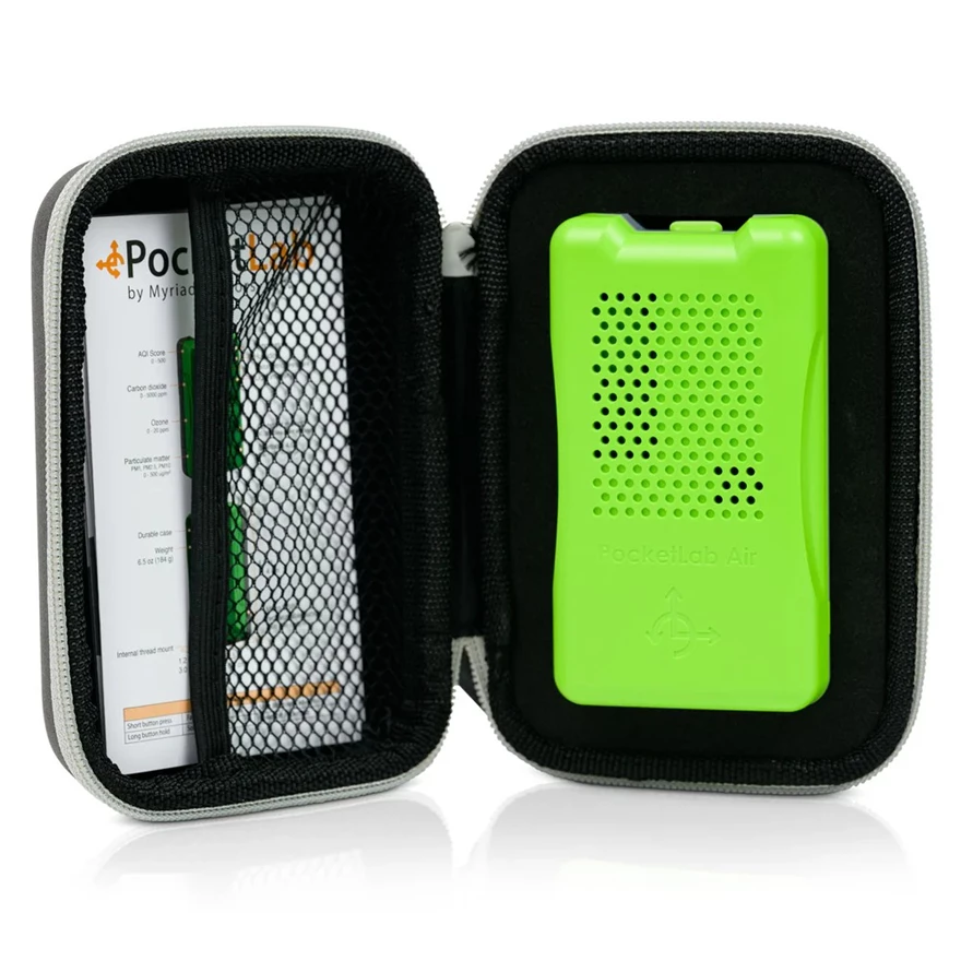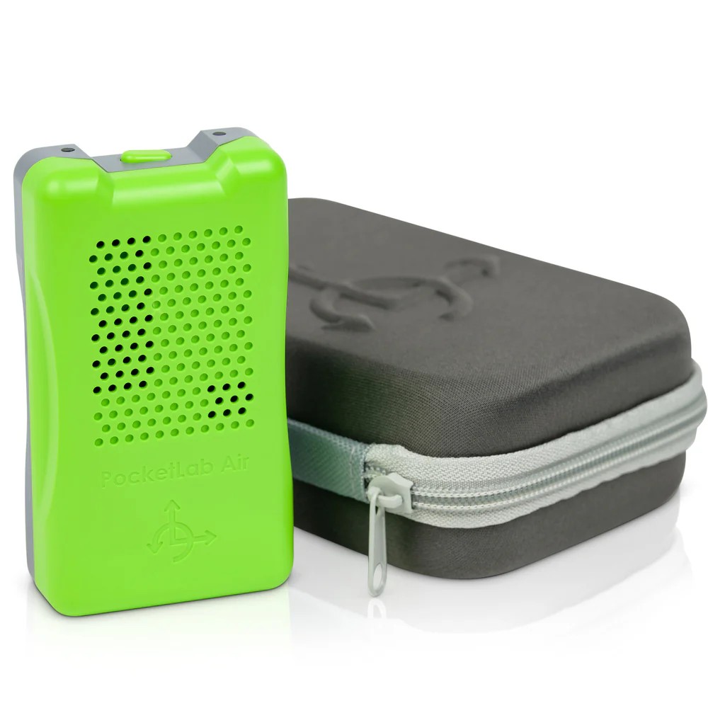 PocketLab Air is a rugged, classroom-ready wireless multi-sensor that measures air quality and climate variables and lets students stream, record, and analyze real-time data using PocketLab Notebook.