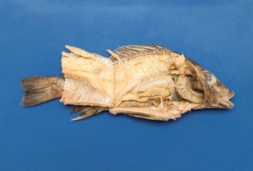 Preserved gray perch for dissection and biology studies. The perch demonstrates the characteristic anatomy of the class Osteichthyes—the boney fish. This is the largest class of vertebrates both in number of species and in number of individuals.