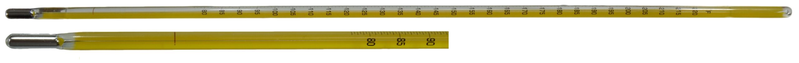 The blank spirit-filled thermometer allows you to make your own thermometer. This thermometer is an ungraduated partial immersion thermometer with a temperature range of -20 ºC to 110 ºC.