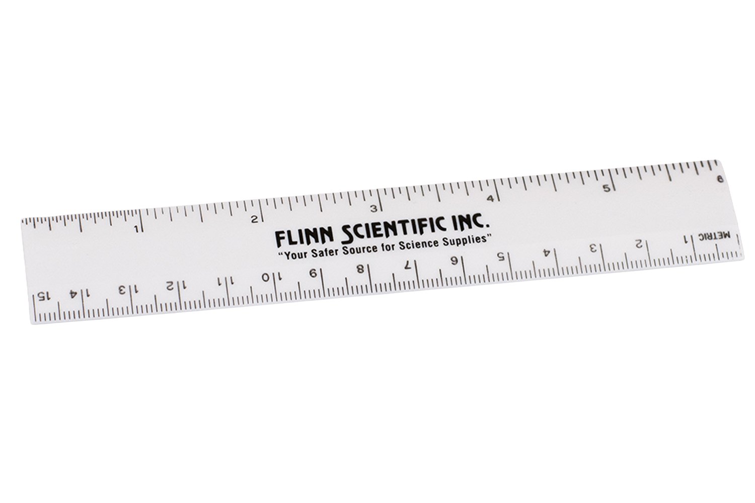 Metric/English. Durable, non-transparent plastic instrument graduated in cm and inches.