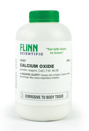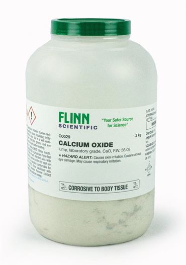 Corrosive; dangerous in contact with organic material; exposure to water or moisture evolves heat. A lump of calcium oxide may disintegrate violently when water is added. Wear eye protection when handling this substance. TLV 2 mg/m3.
