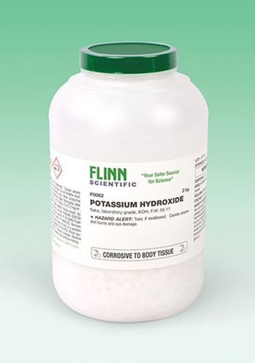 Skin contact causes severe blisters; strongly corrosive as a solid and as a solution; very harmful if swallowed; extremely dangerous to eyes. LD50 273 mg/kg. TLV-C 2 mg/m3. SPECIAL HAZARD ALERT: Wear appropriate face and body protection when making solutions; potassium hydroxide generates large amounts of heat while dissolving. You might consider immersing your solution-making vessel in an ice bath. The ice bath will better enable you to control the solution temperature. Stir continuously.