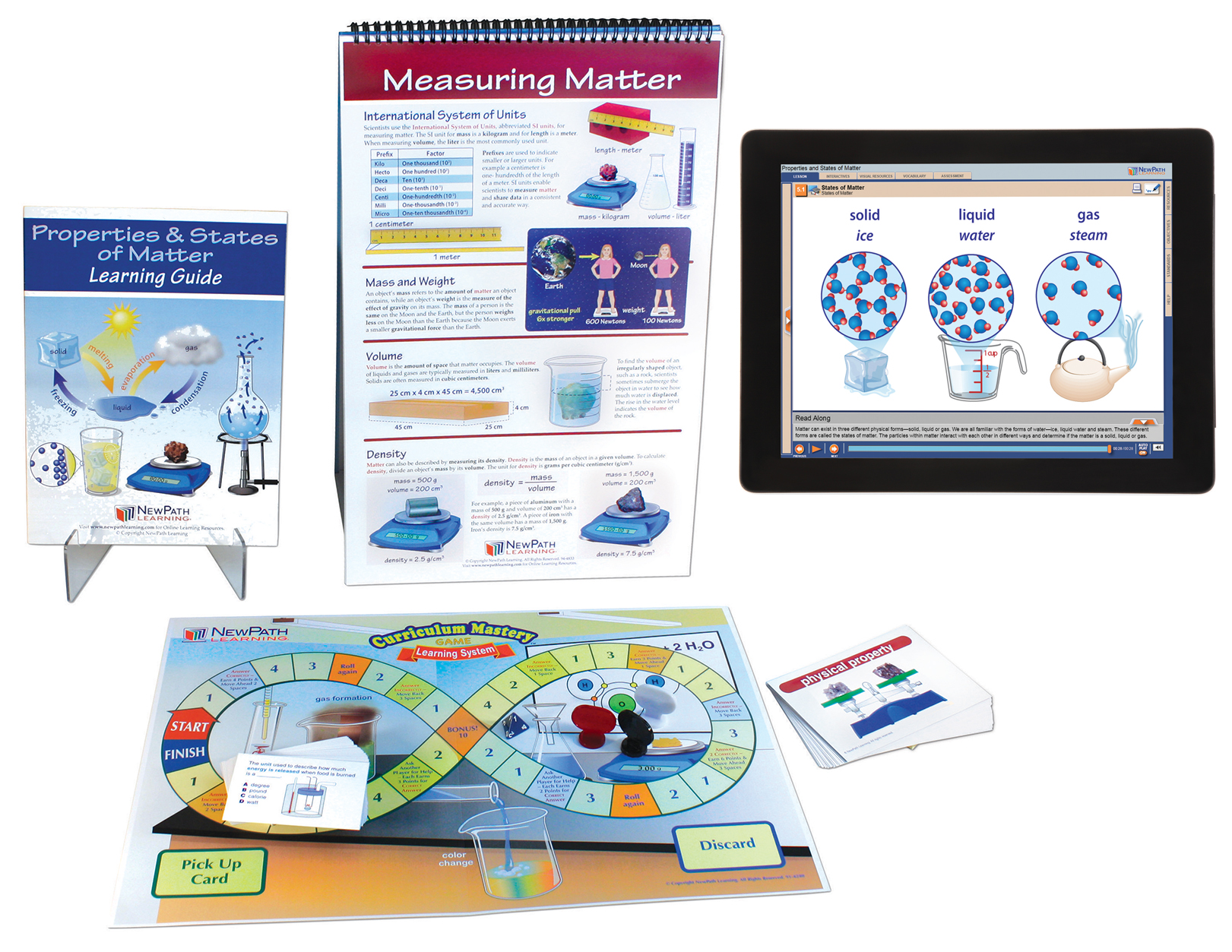 Complete blended learning resource system - Covers current state & national science standards - including Next Generation Science (NGSS)! NewPath’s Properties & States of Matter Curriculum Learning Module provides a complete set of visual, digital and hands-on resources designed to support teacher instruction and provide students with the skills to master key concepts on Properties & States of Matter.