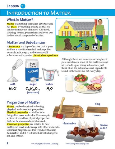 Covers: What is Matter?, Elements & Compounds, Mixtures & Solutions, What is Change of State?, States of Matter - Solids, States of Matter - Liquids, States of Matter - Gases, Changes of State of Matter, and Measuring Matter.