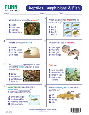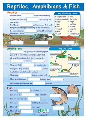 Reptiles, Amphibians and Fish NewPath Visual Learning Guide provides comprehensive coverage of reptiles, amphibians and fish. Each 11" x 17" guide includes four panels of helpful information, including an overview, practice exercises, a graphic organizer and assessment and review questions. Each laminated Write-On/Wipe-Off guide provides an engaging way to study this diverse group of creatures. Set of 10.