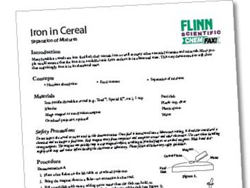 Many breakfast cereals are iron fortified; they contain iron as well as many other essential vitamins and minerals. Most people would assume that the iron is in a soluble ionic form and not in its elemental state. This easy demonstration will show that surprisingly, iron is in its elemental state.