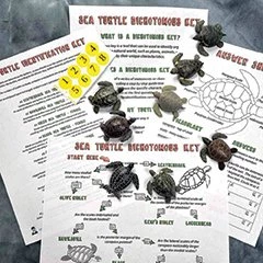 A great introduction to using a dichotomous key for species identification. The kit includes eight distinct sea turtle models. Each beautifully detailed turtle is 2" in length, and has the correct number of scutes on the carapace and plastron. A wonderful hands-on classroom activity, the kit comes complete with all the paperwork needed for background information, vocabulary, and identification.