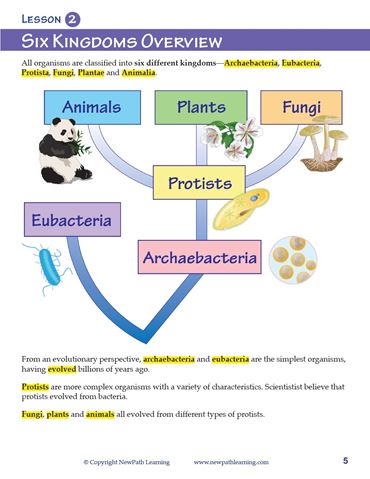 Covers: Classification; The Six Kingdoms of Life; Archaebacteria & Eubacteria; Protista; Fungi; Plant Kingdom; Plants with Seeds; Animal Kingdom; and Vertebrates & Invertebrates.
