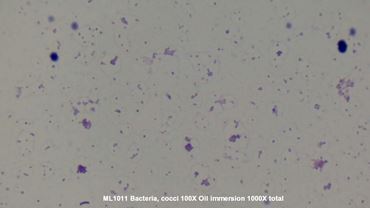 Separate Bacteria Microscope Slide is separate smears of the three morphological forms. Gram stained.