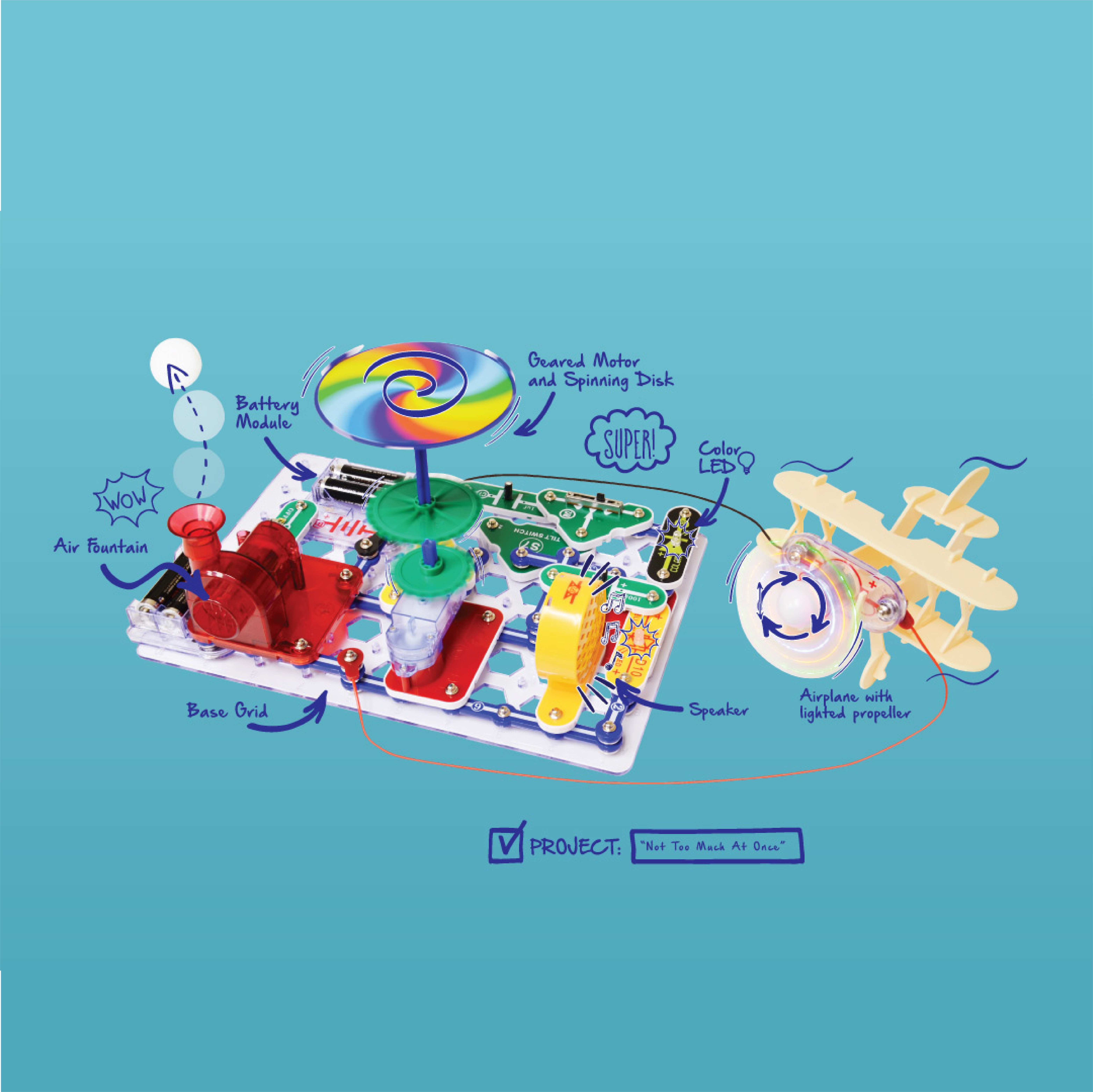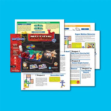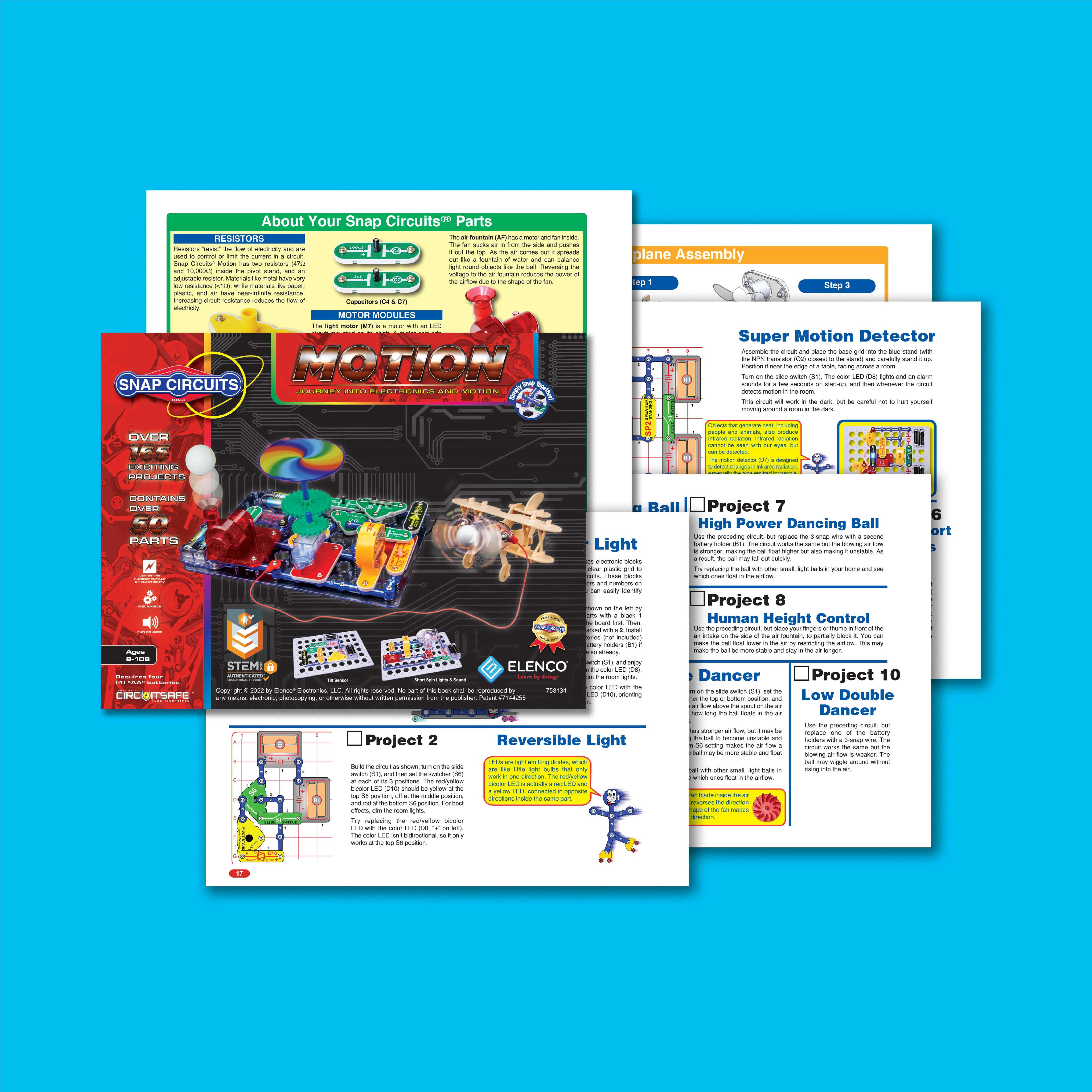 Snap Circuits® Motion contains over 50 parts and over 165 projects to complete -- all projects focused on concepts of motion and physics. Experiment with gears ratios using various gears and pulleys. Experiments include: Color changing lighted fan, air "fountain", motion detector and so much more! Fun projects let kids learn while they play! With its easy-to-follow instructions, Snap Circuits® gives your child a hands-on education to discover how electrical circuits -- like those found in everyday devices kids are familiar with -- function and operate. They'll also gain valuable lessons in building and following instructions. The project manual includes large color illustrations and simple directions for each project.