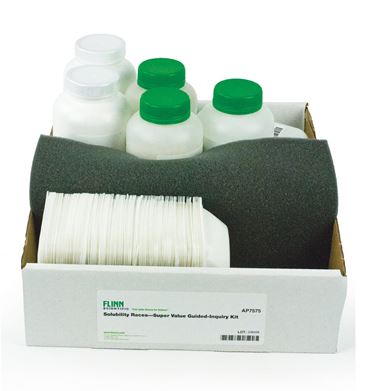 In the Solubility Races Scientific Method Guided-Inquiry Kit, students determine how different factors affect the rate at which a solid dissolves in a liquid. Students measure each variable, conduct tests and analyze the data.