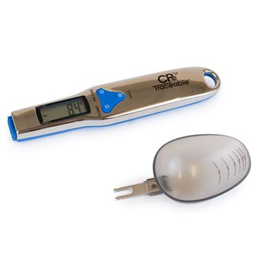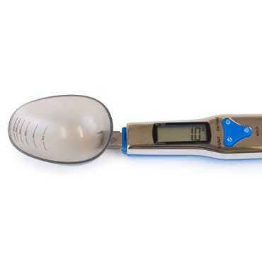 Unique spatula scoops material and instantly displays weight. Three-position soft-touch keys in the handle tares (sets to zero), holds (freezes the display), and switches between grams and ounces. This portable balance is lightweight at only 3 oz, with a digital display located right in the easy-grip handle.