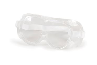 Standard safety goggles with PET lenses and PVC frame, vented design, and Z87+D3 compliance for splash protection.