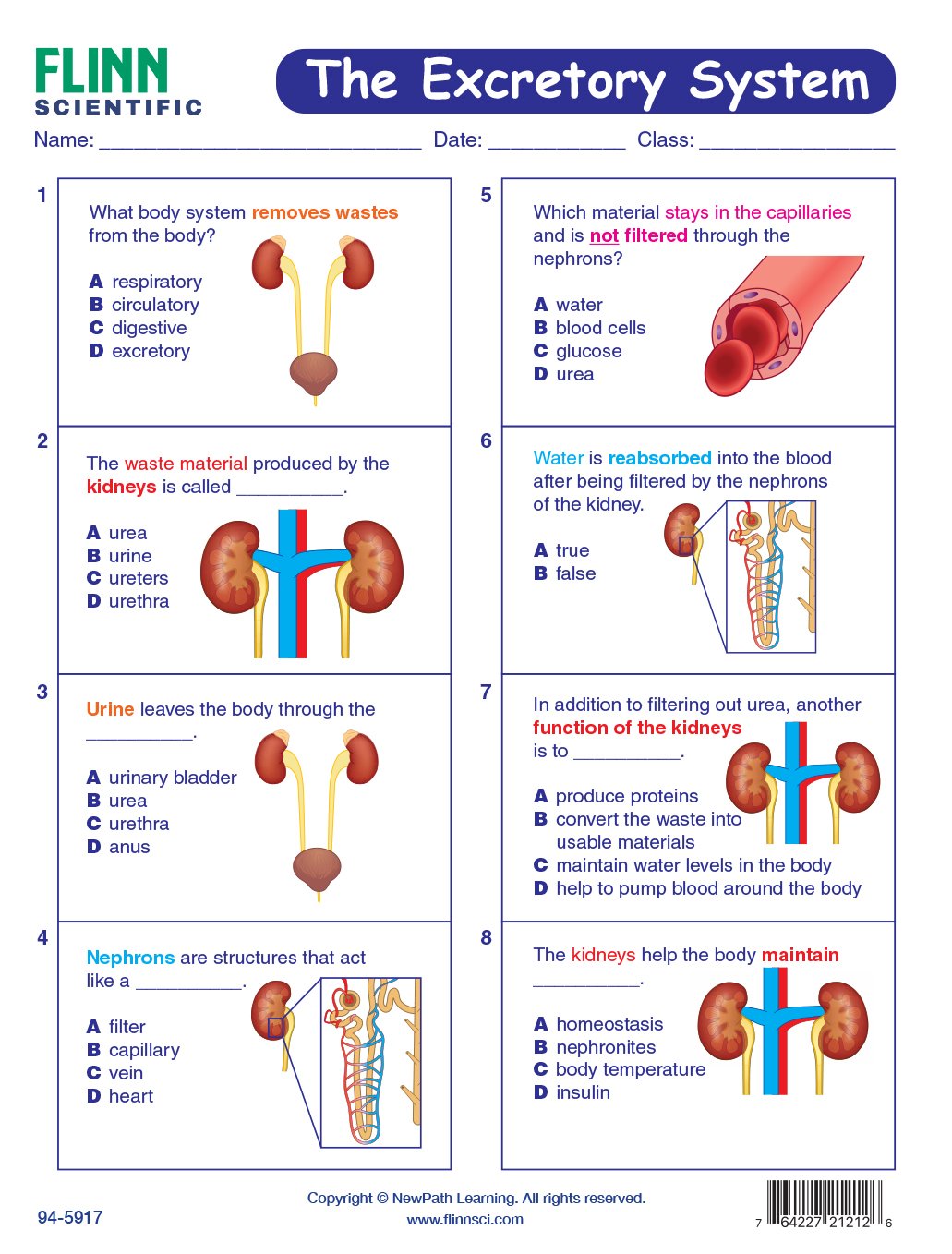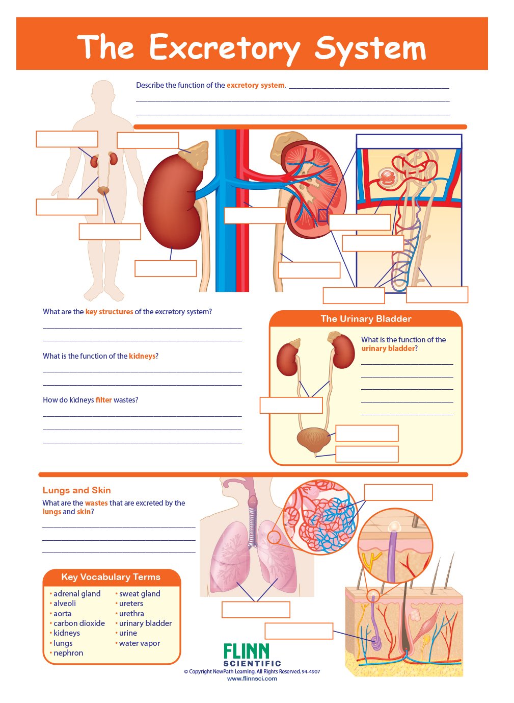 The Excretory System Visual Learning Guide provides comprehensive coverage. Each 11" x 17" laminated Write-On/Wipe-Off guide includes four panels of helpful information to engage students in the study of this topic.